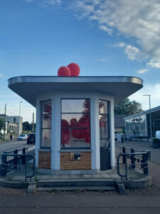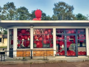 Ein Programm, wie es typisch für KuKuK ist: innovativ, Menschen zusammenführend, künstlerisch facettenreich. Genau dies zeigt auch die Fotoausstellung auf dem – die beiden Zollhäuser verbindenden – Steg. Sie setzt das Geschehen der letzten zwanzig Jahre bildlich in Szene und ruft besondere Momente zurück. Beispielsweise die vier grossen Grenzkunstrouten, die zusammen insgesamt 85.000 Menschen zu Köpfchen hinführten oder an die eindrucksvollen Verwandlungen, die der ehemalige Personenkontrollkiosk regelmäßig als Künstlerwerkstatt und Ausstellungsort erfahren hat. Er ist auch die Keimzelle des KuKuKs, denn 2002 stellte die Gemeinde Raeren das Gebäude dem jungen Verein für eine neue Bestimmung zur Verfügung. Statt Personenkontrolle nun Kunst und Kultur, lautete die Vision. Sie wurde – wie das Jubiläum noch einmal unterstrich – bis heute bestens mit Leben gefüllt.